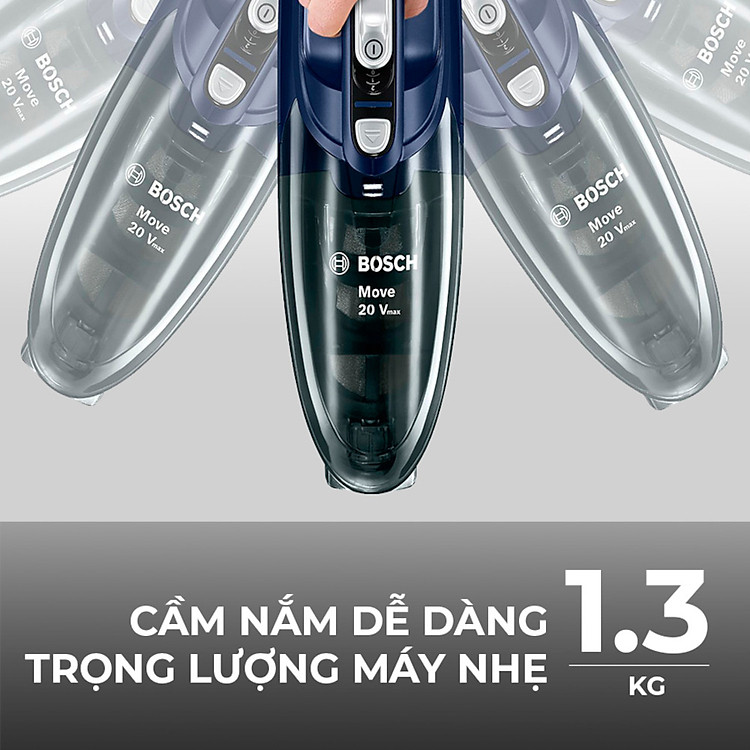 - Với trọng lượng chỉ 1.3kg, người dùng có thể dễ dàng cầm nắm hay di chuyển mỗi lần sử dụng. Nhờ vậy, việc dọn nhà hay hút bụi sẽ không tốn quá nhiều sức lực cho bạn.