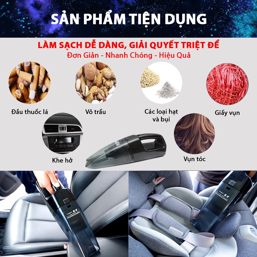 Bạn mong muốn... - Trang bị một sản phẩm hút bụi động cơ tốt, giúp làm sạch hiệu quả không gian trong xe. - Kích thước tiện dụng, dễ dàng sử dụng. - Kích thước dây nối đủ dài để có thể sử dụng làm sạch ở những vị trí ngách khó vệ sinh
