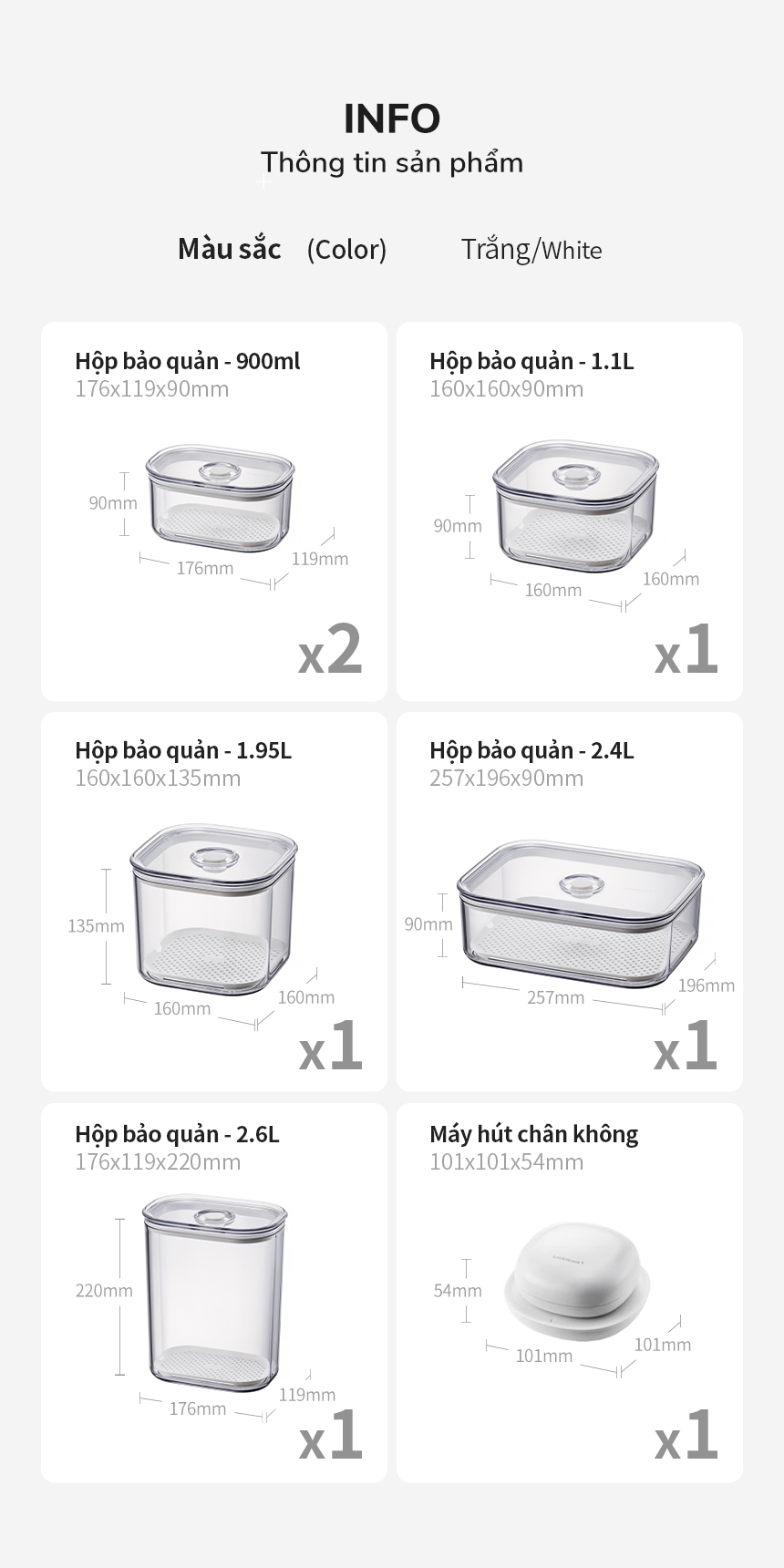- THIẾT KẾ TRONG SUỐT & BO TRÒN: Thân và nắp hộp trong suốt, dễ dàng quan sát thực phẩm bên trong. Thiết kế bo tròn với độ dày bền chắc, chịu lực tốt và không dễ vỡ ngay cả dưới áp suất chân không mạnh.
