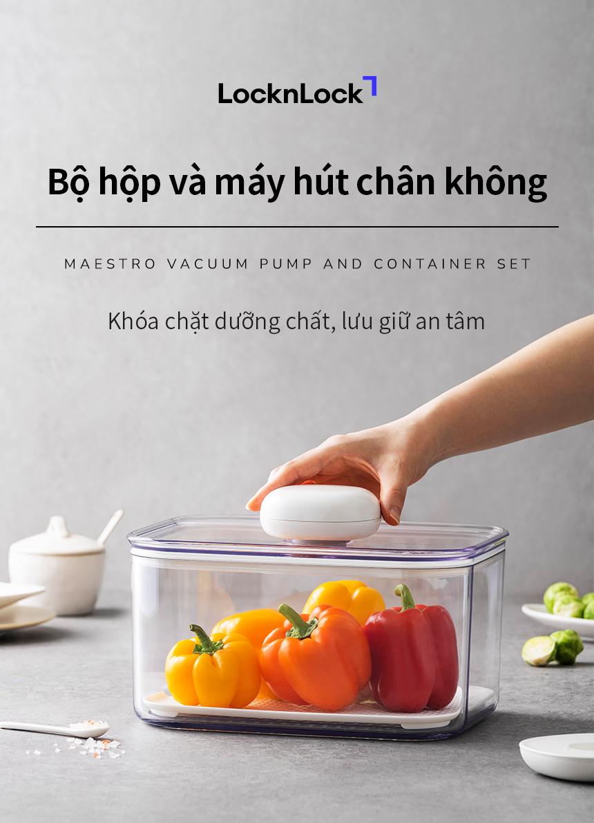 Bộ Máy Hút Chân Không Và Hộp Bảo Quản Thực Phẩm LocknLock 7 Món LVC401S7, Hàng Chính Hãng - JoyMall