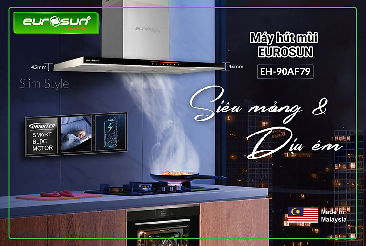 Máy hút mùi Eurosun EH-90AF79 có khả năng hút, khử mùi làm sạch – làm thông thoáng cho không gian bếp của gia đình và bảo vệ sức khỏe của gia đình bạn.