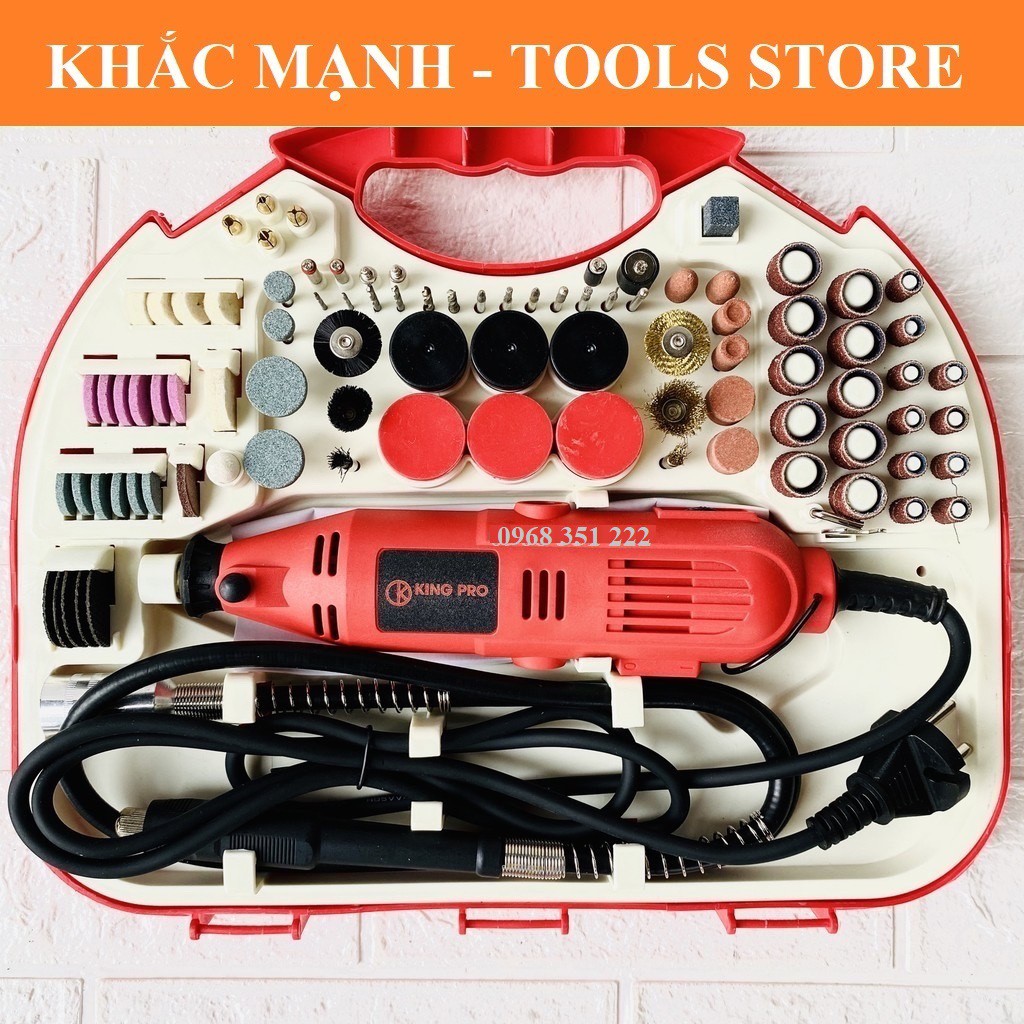 Giới thiệu Bộ Máy Khoan Mài cắt Khắc mini Đa Năng Kingpro 200W 100 chi tiết (Đỏ) Điều Chỉnh 6 tốc độ