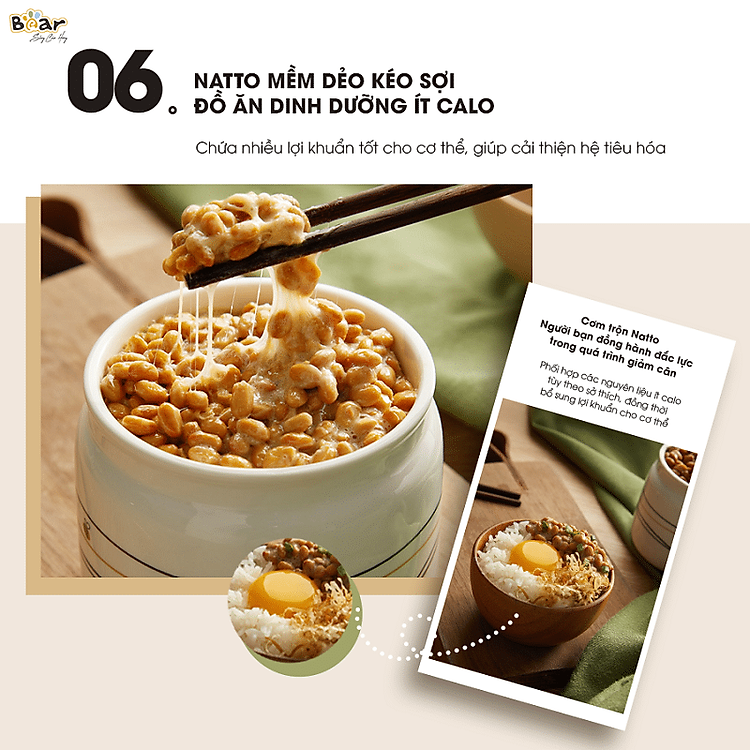 – Chế độ nấu đa dạng: Người dùng có thể chế biến được nhiều món ăn khác nhau với 4 chế độ nấu: Làm sữa chua – Natto – Các món hấp. Mỗi chế độ đều được khống chế nhiệt độ một cách chính xác, giúp đồ ăn lên men chuẩn thời gian mà không cần kiểm soát hay giám sát.
