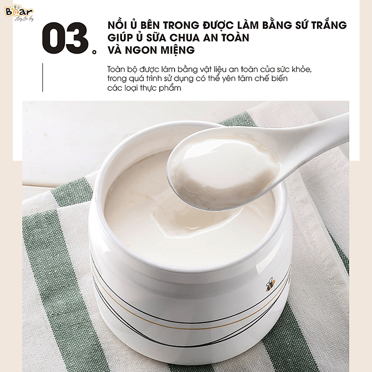 – Hệ thống ủ hiện đại: Chiếc máy làm sữa chua của Bear sở hữu hệ thống ủ dẫn nhiệt 3 chiều cố định, với khả năng đánh thức hàng triệu vi khuẩn có lợi cho cơ thể. Nhiệt độ bao phủ toàn bộ phần thân máy, tạo ra môi trường lên men hoàn hảo.