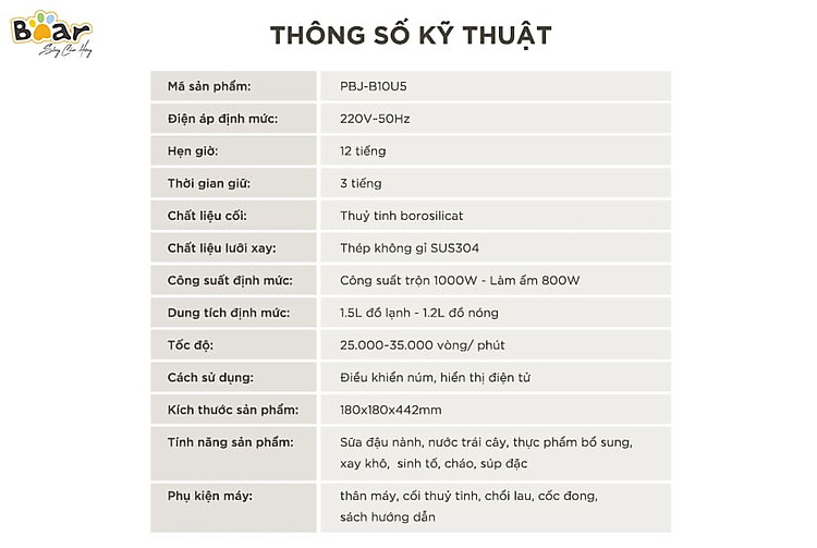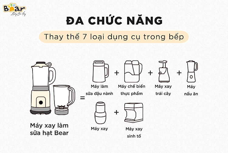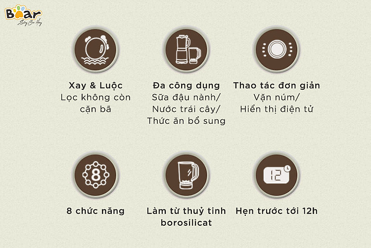 Máy làm sữa hạt Bear PBJ-B10U5 với tám chức năng được tích hợp trong 1 sản phẩm giúp bạn vừa xay vừa nấu, thao tác điều khiển đơn giản dễ sử dụng, cối xay được làm từ thủy tinh cao cấp an toàn cho sức khỏe người dùng. Cùng Bear trải nghiệm ngay siêu phẩm mà mọi căn bếp đều nên sở hữu nhé!