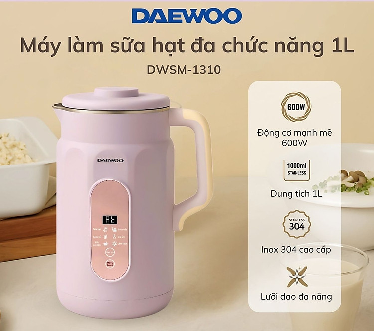 Máy Làm Sữa Hạt Daewoo DWSM-1310 1L, tặng Cẩm Nang 50 Công Thức - Máy Xay Nấu Đa Năng BH 2 năm