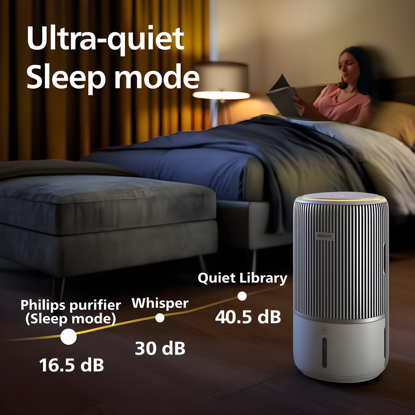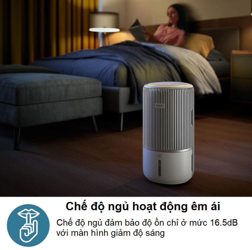 - Tận hưởng giấc ngủ ngon với máy lọc không khí tiên tiến của chúng tôi. Ở chế độ Ngủ, máy hoạt động chỉ ở mức 16,5 dB, êm hơn cả tiếng thì thầm. Ngoài ra, đèn hiển thị kỹ thuật số được làm mờ đi, giảm thiểu tối đa ánh sáng chói mắt.