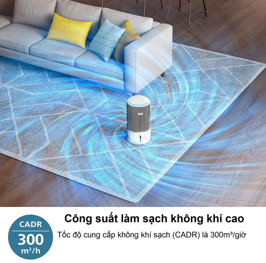 - Luồng khí của máy có thể lan tỏa đến mọi ngóc ngách trong phòng với tốc độ lọc không khí (CADR) lên đến 271 m3/giờ. Máy có thể dễ dàng xử lý không gian rộng lên đến 32.5m2 và làm sạch phòng rộng 20m2 trong vòng chưa đầy 12 phút