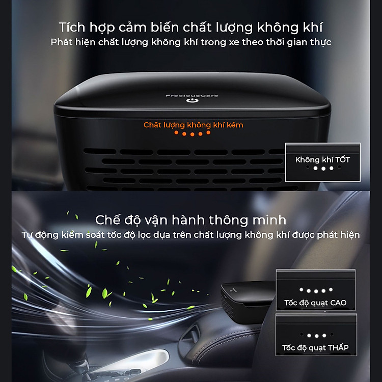 ● Chế độ vận hành thông minh, tự động kiểm soát công suất lọc theo chất lượng không khí trong xe