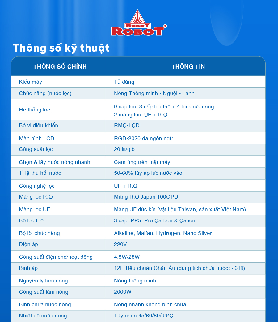 MÁY LỌC NƯỚC NÓNG THÔNG MINH - LẠNH ROBOT GrandPlus-9