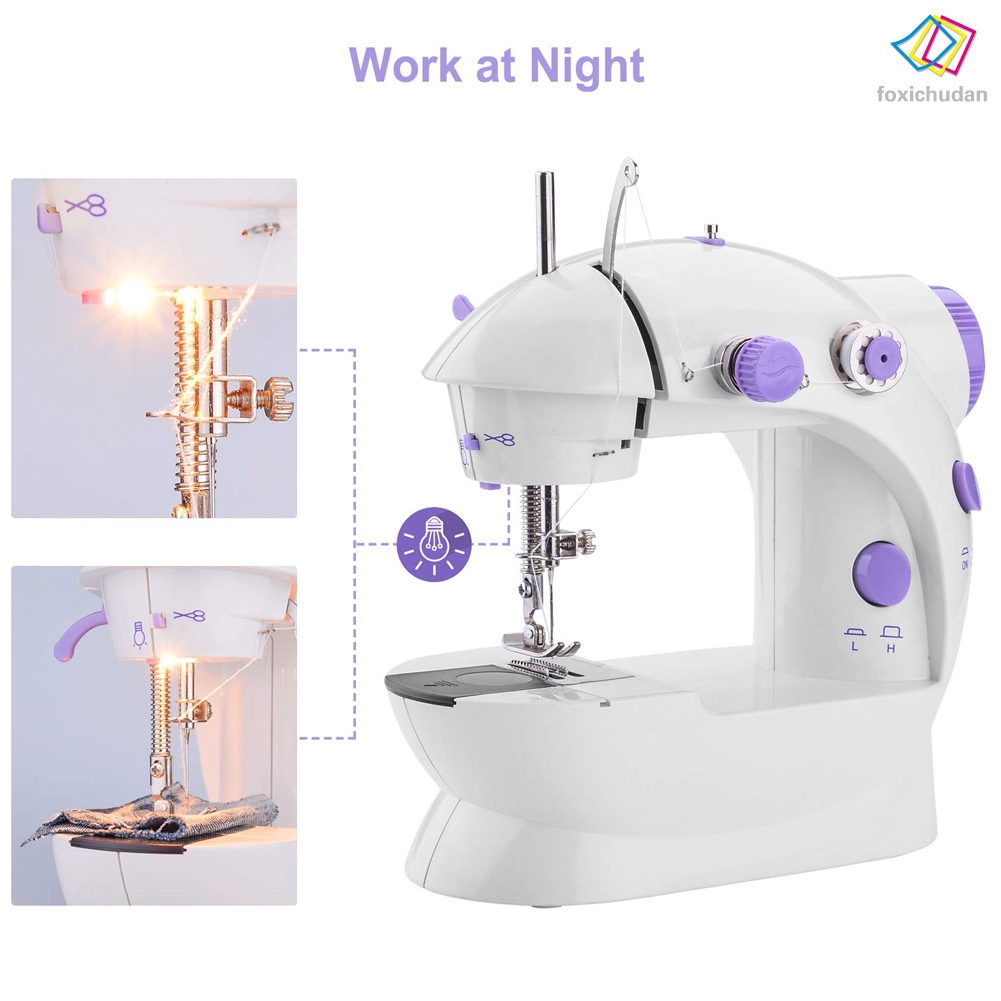 Decription: Features: Portable Compact Mini Size: Sewing machine was designed with mini size and one stitching type which match the basic home sewing demand. It is portable and suitable for sewing multiple light and thin fabrics. Provide a Bright Environment and a Thread Cutter: It helps you see more clearly and reducing damage to your eyes. It is more convenient to use the sewing machine at night. With an auto thread cutter, you can easily cut the line. Double switch and Two-Line Design: This unique sewing machine features a pedal switch and a push button switch. It’s up to you which one you want to use. The featured two-line design (bottom line and surface line) gives you high-quality sewing for all projects. Widely Use:Perfect for many home sewing projects: altering, creating clothing, crafting.Users from Beginners to Advanced. Help you easily open the door to the sewing world.Suitable for clothes,dress,toys,etc. Gift:It will be a very good gift, whether it is for friends or family lovers, children. Specification: Type:Mini Sewing Machine Drive form: electric Included: 1x Mini Sewing Machine Kit