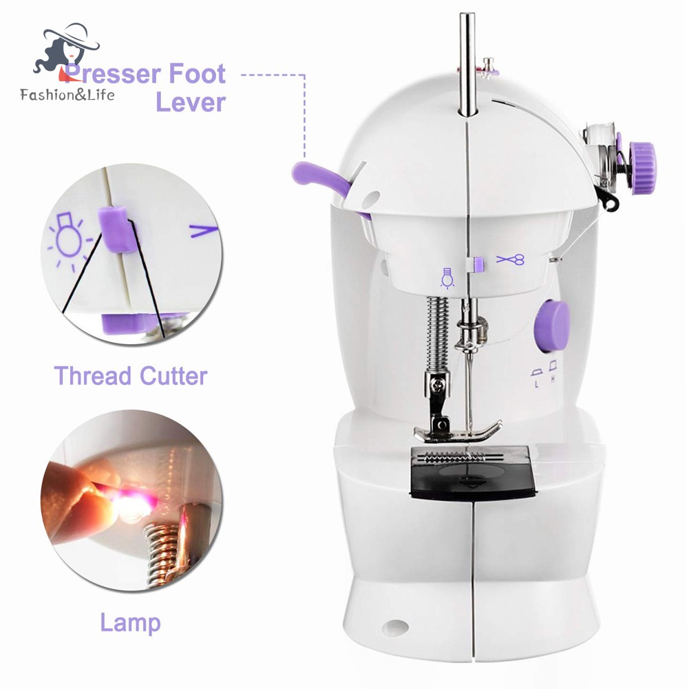 ----------------------------------------------------------------------------- Decription: Features: Portable Compact Mini Size: Sewing machine was designed with mini size and one stitching type which match the basic home sewing demand. It is portable and suitable for sewing multiple light and thin fabrics. Provide a Bright Environment and a Thread Cutter: It helps you see more clearly and reducing damage to your eyes. It is more convenient to use the sewing machine at night. With an auto thread cutter, you can easily cut the line. Double switch and Two-Line Design: This unique sewing machine features a pedal switch and a push button switch. It’s up to you which one you want to use. The featured two-line design (bottom line and surface line) gives you high-quality sewing for all projects. Widely Use:Perfect for many home sewing projects: altering, creating clothing, crafting.Users from Beginners to Advanced. Help you easily open the door to the sewing world.Suitable for clothes,dress,toys,etc. Gift:It will be a very good gift, whether it is for friends or family lovers, children. Specification: Type:Mini Sewing Machine Drive form: electric Included: 1x Mini Sewing Machine Kit