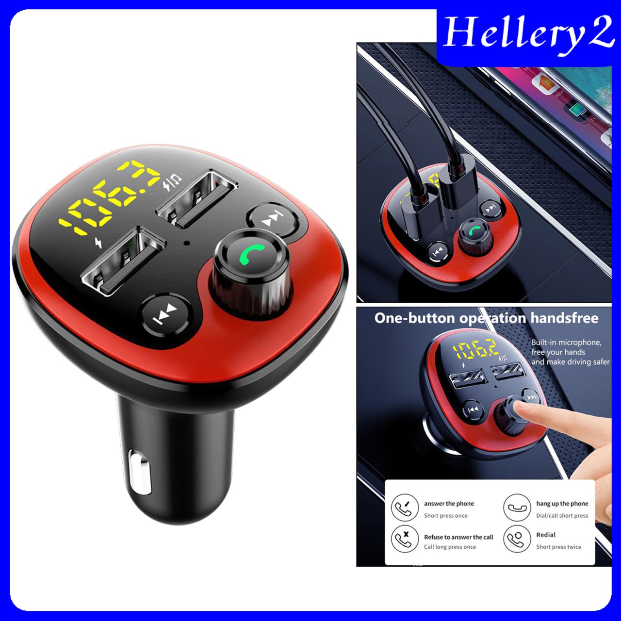 Description: Dual USB3.1A fast charging battery voltage detection. Support Bluetooth music / TF card / U disk playback, support Bluetooth hands-free calling. LED screen for displaying frequency, song number and working status information. Support folder switching playback function, song classification and playback. Support power-off memory function. 2 mobile phones are charged at the same time, support while listening to songs and charging. Specification: Support expansion: U disk / TF card S32G (Not Include) Power supply: DC 5V Output current: 3.1A Transmission frequency: 87.5MHz - 108.0MHz Protection: short circuit / over voltage / over current / over power / under voltage / over temperature protection Product size: 86x51.5x45.5mm Package Includes: 1 x Car Handfree FM Transmitter 1 x User Manual Note: Transition: 1cm=10mm=0.39inch Please allow slightly 0-1cm difference due to manual measurement. Colors can appear different depending on light and how the listing is viewed. Thanks for your understanding and attention. Wish you a pleasant shopping experience!
