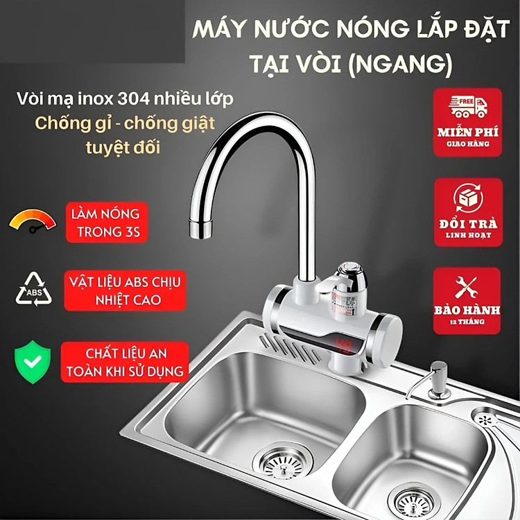 Khám phá sự hiện đại và an toàn với sản phẩm máy nước nóng lạnh lắp đặt tại vòi rửa bát, và vòi nước nóng lạnh trực tiếp, được trang bị công nghệ cảm biến chống giật đảm bảo an toàn tối đa cho gia đình bạn.