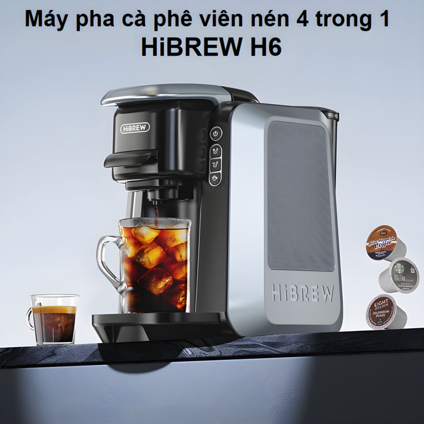 Giới thiệu Máy pha cà phê 4 trong 1, Espresso, Viên Nén Nespresso, Nescafe Dolce, Kcup Thương hiệu Mỹ cao cấp HiBREW - H6 - HÀNG CHÍNH HÃNG