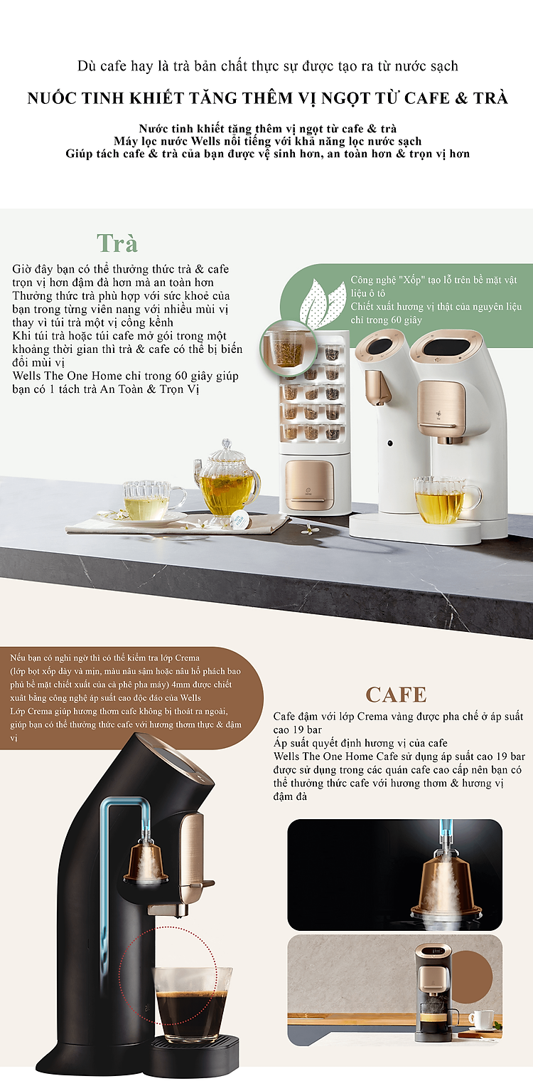 Giới thiệu Máy pha viên nén Trà và Cafe Wells Home Cafe [TẶNG KÈM Khay đựng viên nén] - Hàng chính hãng