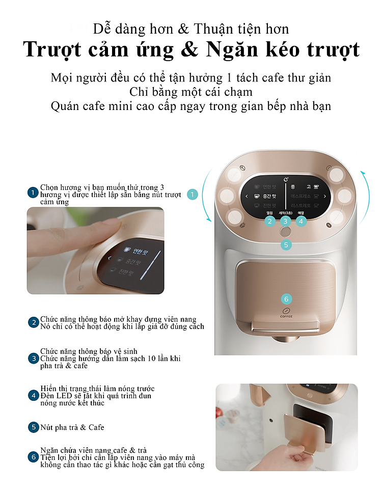 Ngăn chứa viên nén Trà & Cà phê tiện lợi, nhanh chóng.