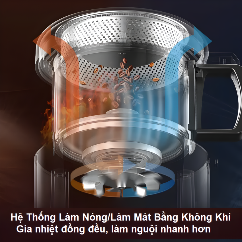 - Bạn không cần canh chừng trong suốt quá trình, chỉ cần cài đặt thời gian theo khẩu vị. Thông thường chỉ cần 5–9 phút để hoàn tất. Dụng cụ tiện lợi, lý tưởng cho việc rang cà phê tại nhà, cùng gia đình tận hưởng thời gian bên nhau.