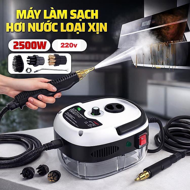 Với công suất mạnh mẽ 2500W, máy tạo ra hơi nước nóng kết hợp ion cùng nhiệt độ lên đến 105°C, dễ dàng đánh bay mọi vết bẩn cứng đầu, dầu mỡ lâu ngày, mảng bám khó xử lý mà không cần hóa chất độc hại.