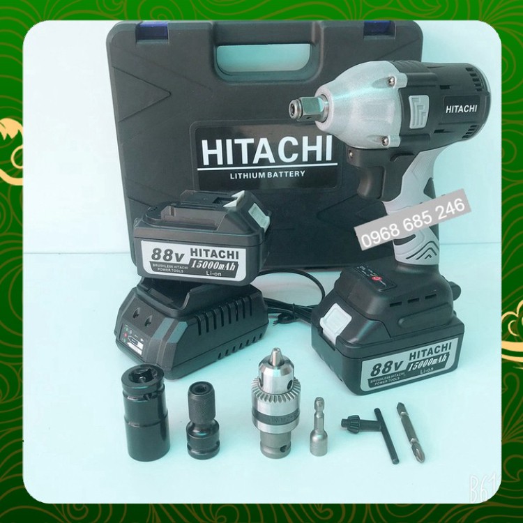 Nhà Cửa & Đời Sống > Dụng cụ cầm tay > Máy bắt vít || Máy siết bulong Hitachi 88V 2 pin 15000mAh, không chổi than, đầu 2 trong 1 - KÈM PHỤ BỘ PHỤ KIỆN _ Nhật Việt official