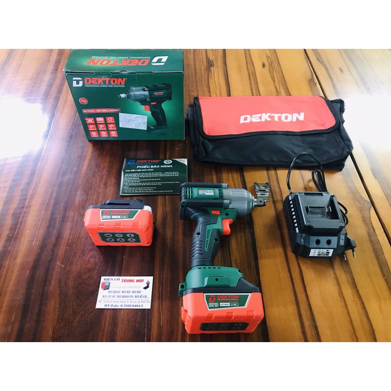Thông tin chi tiết Hãng sản xuất : Dekton Điện thế 220V Điện ap 21V Động cơ : Brushless ( Không chổi than) Bao gồm 2 Pin 4.0Ah 1 Xạc đế (Xạc nhanh) Đầu bulong :1/2 (12.7mm) Lực siết 1:1.700 V/p ( 350N/m) Lực siết 2 :2.100 V/p ( 410 N/m) Lực siết 3 : 2.500 V/p (475N/m) Ở lực siết 3 bạn có thể mở được bánh sau xe tay ga Bảo hành chính hãng : 8 Tháng.