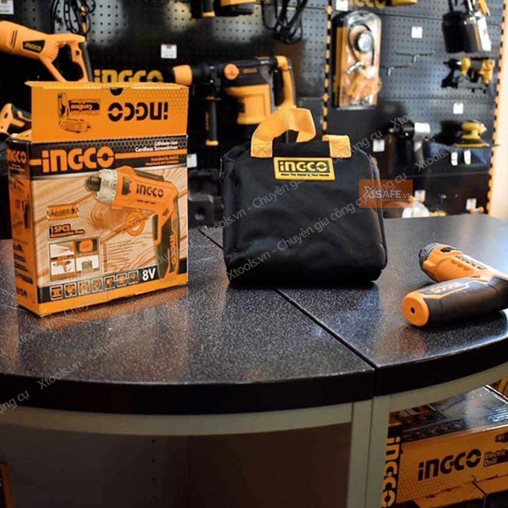 Giới thiệu Máy siết vít INGCO CSDLI0801 8V Tặng kèm 10 mũi siết vít 25mm, 1 mũi từ, 1 cục sạc 2 giờ. Máy bắn bulong cầm tay