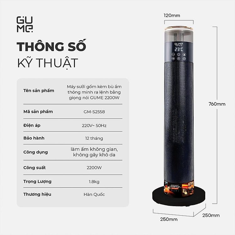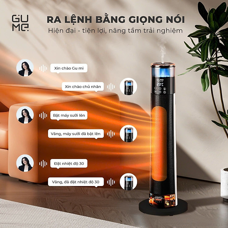 Tên sản phẩm: Máy sưởi gốm kèm bù ẩm thông minh ra lệnh bằng giọng nói GUME 2200W