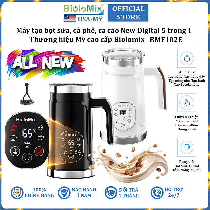 - Máy tạo bọt sữa Biolomix BMF102E New Digital được thiết kế với kiểu dáng sang trọng, độc đáo và cao cấp. Máy có thể tạo bọt sữa nóng, lạnh cho cappuccino, đồng thời làm nóng sữa để pha latte...