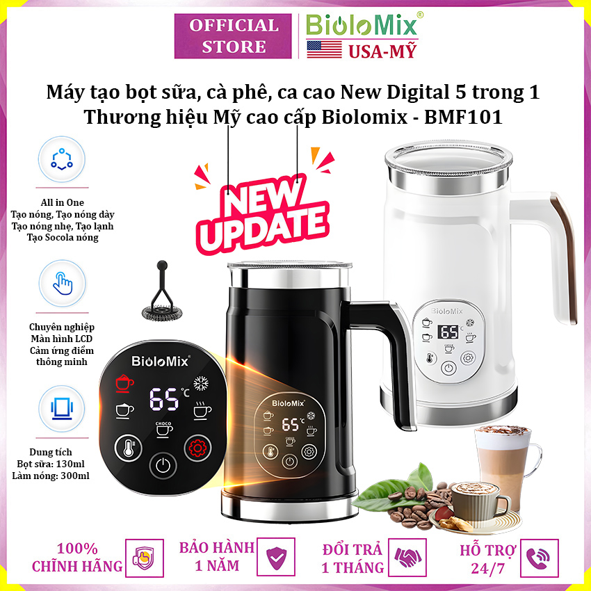 - Máy tạo bọt sữa Biolomix BMF102E New Digital được thiết kế với kiểu dáng sang trọng, độc đáo và cao cấp. Máy có thể tạo bọt sữa nóng, lạnh cho cappuccino, đồng thời làm nóng sữa để pha latte...