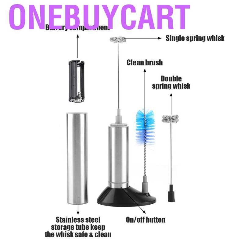 Package List: 1 * Main Body (Battery not included) 1 * Single Spring Whisk 1 * Double-spring Whisk 1 * Stainless Steel Storage Cover 1 * Stand 1 * Cleaning Brush