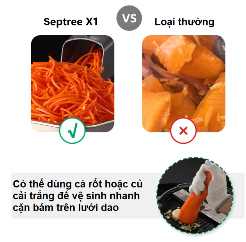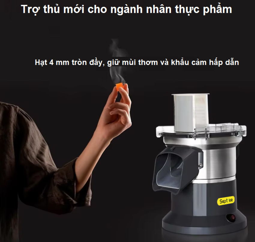 | Chất liệu | * Thông số kỹ thuật sản phẩm:- Thương hiệu: USA - MỸ- Tên thương hiệu: Septree- Nhà máy sản xuất đặt tại: Trung Quốc- Công suất lớn: 1.100W- Điện áp: 220VAC-50Hz- Năng suất cắt: Khoảng 300kg/ giờ - 400kg/ giờ ( tùy nguyên liệu)- Miệng ống lớn: 9*6cm- Chất liệu: Hợp kim nhôm + Thép không gỉ cao cấp- Kích thước máy: 267x253x372mm- Trọng lượng máy: 5kg* Lữu cắt:- Cắt lát: 2-4mm (Điều chỉnh lưỡi dao) - Cắt sợi: 2-4mm- Cắt hạt lựu có cá loại kích thước: 4x4x8, 6x6x8, 8x8x8, 10x10x8, 12x12x8,16x16x8=> Chứng nhận chất lượng: ROHS, ERP, LFGB, REACH, FCC,3C, CE, EMC* Bộ sản phẩm đầy đủ (Full) gồm:-1 thân máy động cơ-1 khuôn thái lát: 2mm - 4mm- 3 khuôn thái sợi: kích thước 2*2,5mm; 3*3mm; 4*4mm- 3 khuôn hạt lựu đi kèm mặc định khi chọn mua phân loại Full: 4x4x8, 6x6x8, 8x8x8 |