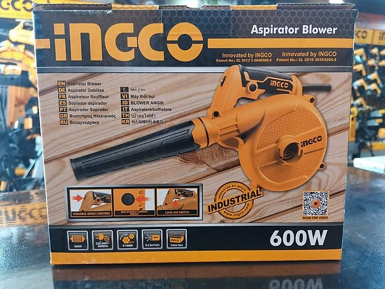 Máy thổi bụi INGCO 600W AB6008 giúp thổi sạch bụi nhanh chóng và dễ dàng: Máy được thiết kế với chức năng chính là kép thổi gió và hút bụi mạnh mẽ, với sự kết hợp 2 chức năng giúp máy thổi tiện ích cho người sử dụng. Máy thổi bụi INGCO sử dụng công suất 600W cùng luồng không khí mạnh mẽ, lưu lượng khí cao kết hợp với bánh quay số biến thiên giúp điều chỉnh tốc độ dòng khí. Máy thổi bụi INGCO AB6008 có thiết kế tay cầm tiện lợi, với thiết kế khóa và báng cầm thuận cả hai tay phù hợp cho cả những người thuận tay trái và thuận tay phải. Lắp đầu hút và túi chứa dễ dàng cực kỳ tiện ích khi sử dụng. Máy hoạt động với tốc độ 16000 vòng/phút đem đến tốc độ thổi và hút nhanh, giúp người dùng thuận tiện khi sử dụng.