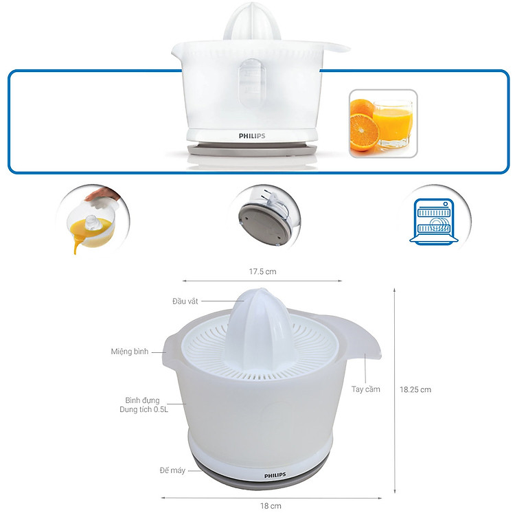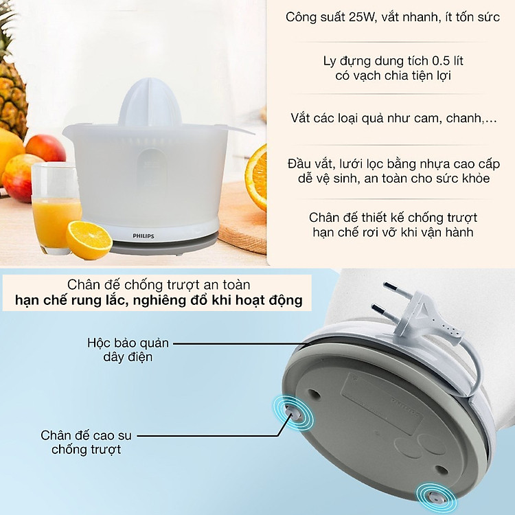 - Máy vắt cam Philips thích hợp sử dụng vắt các loại quả có múi
