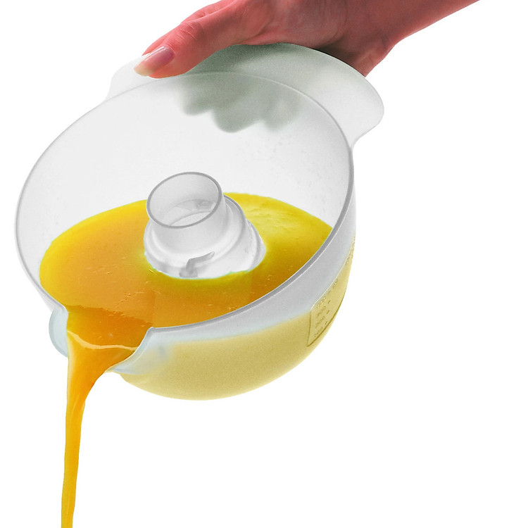 Ngoài ra, ly đựng có vạch chia dễ theo dõi lượng nước đã vắt để tránh trào, đổ gây lãng phí hoặc có thể sử dụng cho các nhu cầu đong đếm khi làm bánh, pha sữa cho bé vô cùng tiện lợi.
