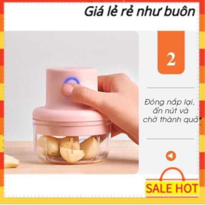 Máy xay đa năng mini cầm tay xay thịt gia vị tỏi ớt rau củ kèm dây sạc dung tích 250ml