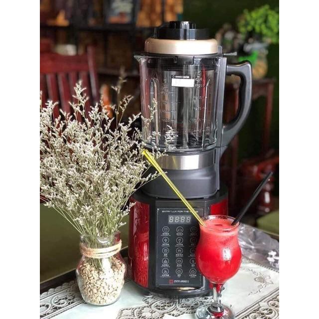 Kiểu dáng hiện đại Máy làm sữa hạt đa năng Ranbem 769s sở hữu thiết kế hiện đại, màu sắc phối kết hợp nổi bật giữa tông đen và đỏ, đáp ứng sở thích của nhiều người dùng khác nhau. Đồng thời sản phẩm phù hợp sử dụng trong mọi không gian nội thất, đem đến sự tiện nghi cho không gian bếp của gia đình bạn. Bột thành phẩm mịn cỡ 5mm Máy làm sữa hạt đa năng Ranbem 769s trang bị lưỡi dao ba lớp bát giác được làm bằng thép không gỉ sắc bén, chắc chắn giúp tăng hiệu quả khi xay. Kết hợp động cơ mạnh mẽ với công suất xay 800W, công suất nấu 800W, cho khả năng xay nhuyễn, mịn mọi loại hạt. Kết quả thử nghiệm, máy cho ra bột thành phẩm mịn cỡ 5mm, giúp bạn có thể yên tâm chế biến thức ăn, đồ uống, đặc biệt là đồ ăn dặm cho trẻ nhỏ. Cối thủy tinh chịu nhiệt Cối trộn của Ranbem 769s sử dụng chất liệu thủy tinh Borosilicate dày năm lớp, có khả năng chịu lực và chịu nhiệt tốt. Nắp cối tích hợp công tắc thông minh, giúp máy chỉ vận hành khi người dùng đã đóng chặt nắp. Việc này giúp bạn có thể yên tâm mỗi khi sử dụng hơn, vì khi xay thực phẩm với tốc độ vòng quay cao rất có thể hạt sẽ bắn ra bên ngoài, gây thương tổn cho cơ thể khi bạn đứng gần. Hẹn giờ bật máy lên tới 12 tiếng Đặc biệt, lần đầu tiên trên thế giới đối với dòng máy máy xay đa năng được tích hợp chế độ hẹn giờ. Với chức năng hẹn giờ, các chị em nội trợ có thể chủ động thời gian hơn trong việc chế biến đồ ăn, thức uống hàng ngày mỗi khi ở nhà. Tính năng này rất hữu ích đối với những người thường xuyên bận rộn.