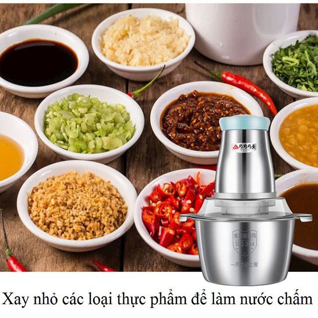 Giới thiệu Máy Xay Thịt Cối Inox 4 Lưỡi Đa Năng, Máy Xay Cầm Tay Đa Năng 2 Lít Công Suất Lớn-250W, Hàng Chính Hãng BH 12 Tháng