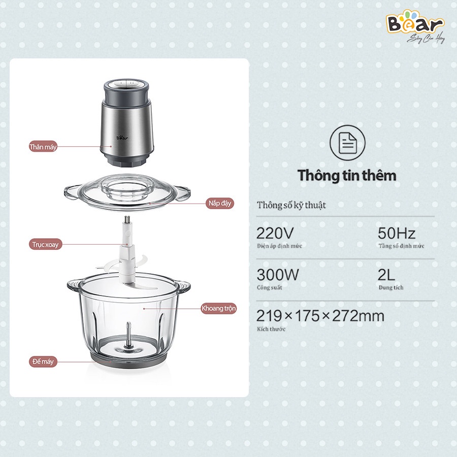 Giới thiệu Máy Xay Thịt Mini Đa Năng Bear Cối Thủy Tinh 2 Lít Bảo Hành 18 Tháng - HiMect