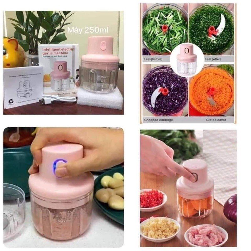 🌹🌷🏵️MÔ TẢ SẢN PHẨM: - Với dung tích 250ml chỉ gọn nhẹ trong bàn tay,vệ sinh máy lại quá dễ dàng nhanh gọn. - Chỉ với 1 nút bấm mà thực phẩm được xay dễ dàng mà không cần cắm điện dây nhợ lỉnh kỉnh, vì là máy sạc tích điện nên sau 1 lần sạc đầy là có thể dùng cho nhiều lần tiếp theo. - Máy xay cực bền, xay êm ru, đầu dao sắc lịm 2 đầu. - Xay được các loại TỎI, ỚT, HÀNH, TÔM, CUA, CÁ, RAU, CỦ, QUẢ, SINH TỐ,...