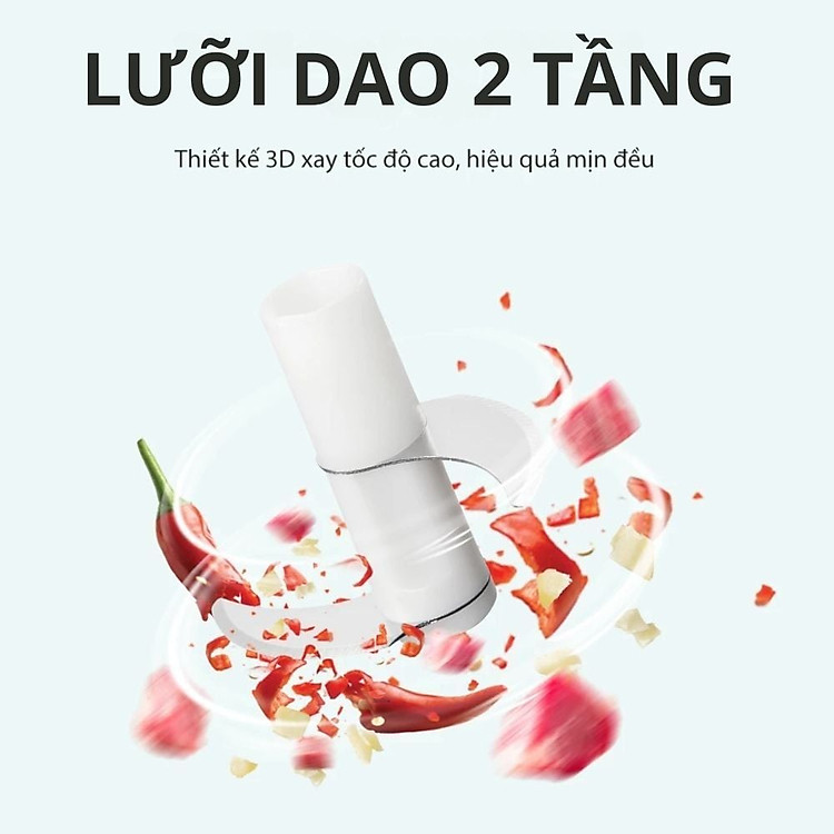 Đa Năng Vượt Trội: Không chỉ xay tỏi ớt, chiếc máy nhỏ gọn này còn có thể xay thịt lượng ít, các loại hạt, rau củ để chuẩn bị đồ ăn dặm cho bé một cách hoàn hảo.