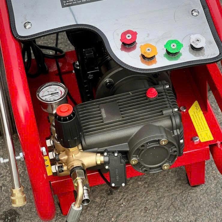 DEKO DK-X85 (hay DEKO DK-X85) là dòng máy rửa xe cao áp chuyên nghiệp có công suất lớn nhất hiện nay của hãng, được coi là "quái vật" trong phân khúc máy chạy điện 1 pha (220V). Thông số kỹ thuật vượt bậc Công suất: 8500W (8.5kW) - Đây là mức công suất cực hiếm cho dòng điện 220V, mang lại lực phun xịt vô cùng mạnh mẽ. Áp lực phun: Tối đa lên tới 260 Bar (mạnh ngang ngửa các dòng máy 3 pha công nghiệp nặng). Lưu lượng nước: 26 Lít/phút, cực kỳ hiệu quả để làm sạch xe bồn, xe ben hoặc tàu thuyền. Đầu bơm: Sử dụng đầu nén trục khủy với 3 Piston sứ cao cấp, chịu nhiệt và chống mài mòn tuyệt đối. Động cơ: Motor cảm ứng từ 100% dây đồng, thiết kế tản nhiệt lớn để chịu được tải công suất 8.5kW. Điểm nổi bật và Ứng dụng Sức mạnh tối thượng: Có khả năng đánh bay những lớp bê tông chết, rỉ sét lâu ngày hoặc các mảng bám công nghiệp khó trị nhất. Chỉnh áp linh hoạt: Mặc dù áp lực cực đại rất lớn, máy vẫn có cụm chỉnh áp bằng đồng giúp người dùng hạ áp khi cần rửa các bề mặt nhạy cảm hơn. Kết cấu bền bỉ: Khung thép sơn tĩnh điện chống va đập, bánh xe chịu lực giúp di chuyển máy dễ dàng dù trọng lượng khá nặng. Phụ kiện đi kèm: Thường gồm súng cao áp dài chuyên dụng, dây lõi thép thủy lực (15m - 20m) và bộ 4 béc phun (0°, 15°, 25°, 40°).