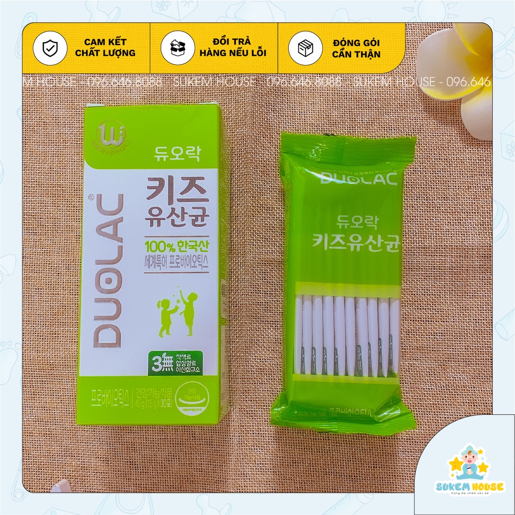💥 Xuất xứ: Hàn Quốc 💥 Hướng dẫn sử dụng: - Ngày 1 gói 💥 Đối tượng sử dụng men vi sinh Duolac - Trẻ từ 24 tháng