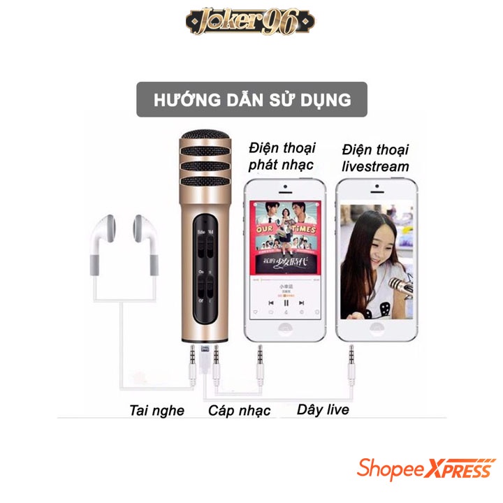 Đặc điểm sản phẩm 1. Micro Livestream C7 hàng loại 1 chất lượng tốt. (Xem video phân biệt sản phẩm):https://www.youtube.com/watch?v=JiZjs2opNhI 2. Dùng được trên máy tính và trên di động. 3. Hỗ trợ 2 điện thoại (1 lấy nhạc, 1 livestream) 4. Đặc biệt nhấn mạnh: sản phẩm của chúng tôi được sử dụng trong một micro tốt 5. Sử dụng karaoke hay ghi âm đều được 6. Vỏ bằng kim loại 7. Hoàn toàn tương thích với điện thoại Apple, điện thoại Android 8. Bộ sản phẩm bao gồm: 1 Micro C7 + 1 cap sạc + 1 cap âm thanh + 1 cap live + 1 tai nghe + 1 bông lọc + sách HDSD *** Phụ kiện bao gồm: 1. Micro C7 (Loại xịn) 2. Dây sạc 3. Dây lấy nhạc (dây 2 đầu 3.5) 4. Dây live (dây 1 đầu micro USB 1 đầu 3.5) 5. Tai nghe 6. Bông lọc 7. Sách HDSD 8.Hộp đựng sản phẩm