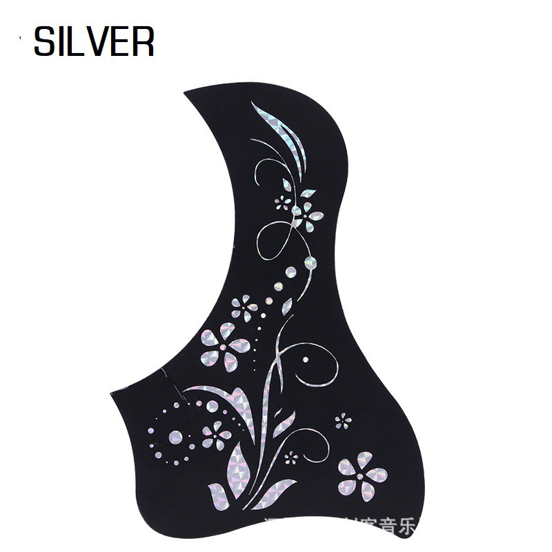 MIẾNG DÁN CHỐNG XƯỚC ĐÀN GUITAR VỚI HOA VĂN ĐẶC BIỆT - Công dụng: dán lên mặt đàn Guitar, phần gỗ ở miệng lỗ thoát hơi, tránh xước đàn. - Cách sử dụng: Như 1 miếng nhãn vở học sinh, bạn bóc lớp giấy decal phía sau ra, sau đó ướm, và dán lên vị trí thùng đàn.