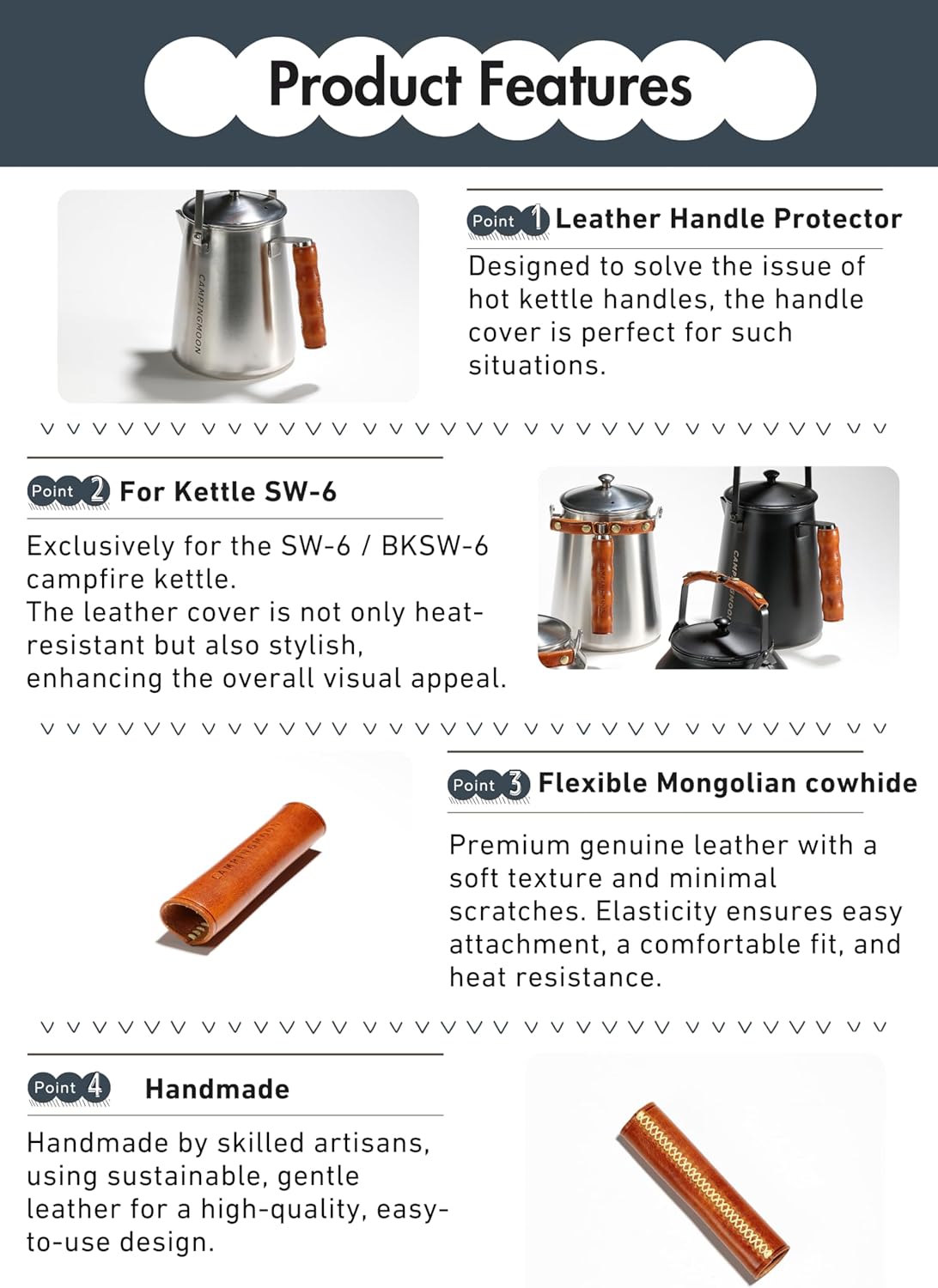 【Vỏ bọc tay cầm bằng da】Được thiết kế để giải quyết vấn đề tay cầm ấm đun nước nóng, vỏ bọc tay cầm là lựa chọn hoàn hảo cho những tình huống như vậy.