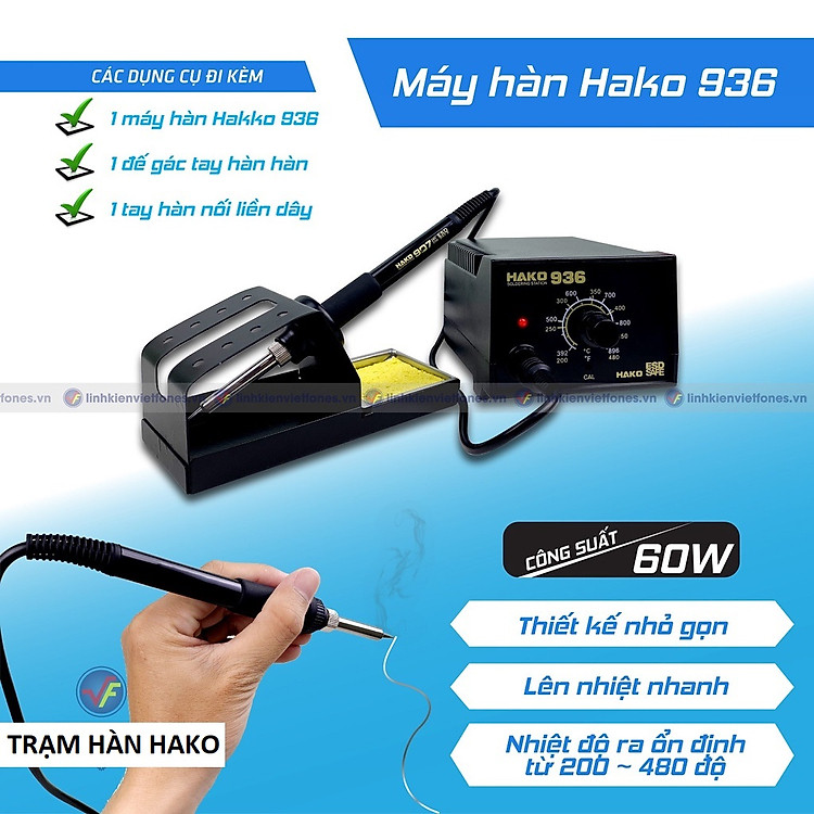- Hiện Đại và Tiện Lợi: Với thiết kế hiện đại và tính năng tự ngắt nhiệt, mỏ hàn Hako 936 Bản Nâng Cấp mang lại trải nghiệm hàn thiếc đỉnh cao mà không cần lo lắng về quá trình hàn.