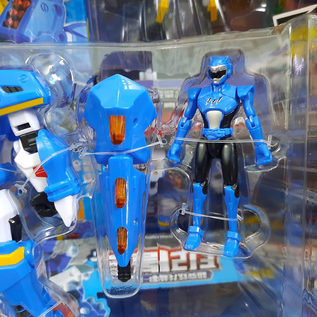 Quý khách sưu tập đầy đủ bộ các nhân vật : - Robot siêu khủng long Preta hỏa thần cùng siêu nhân Sammy (màu đỏ) - Robot siêu khủng long Stego băng giá cùng siêu nhân Leo Thiên tài (màu đen ) - Robot siêu khủng long Tyranno Sấm sét cùng siêu nhân Volt tốc độ (màu xanh dương đậm) - Robot Siêu khủng long Trix hào quang hộ vệ cùng siêu nhân Lucy (màu hồng) - Robot siêu khủng long cá mập Megalodon cùng siêu nhân Volt (màu xanh dương nhạt)