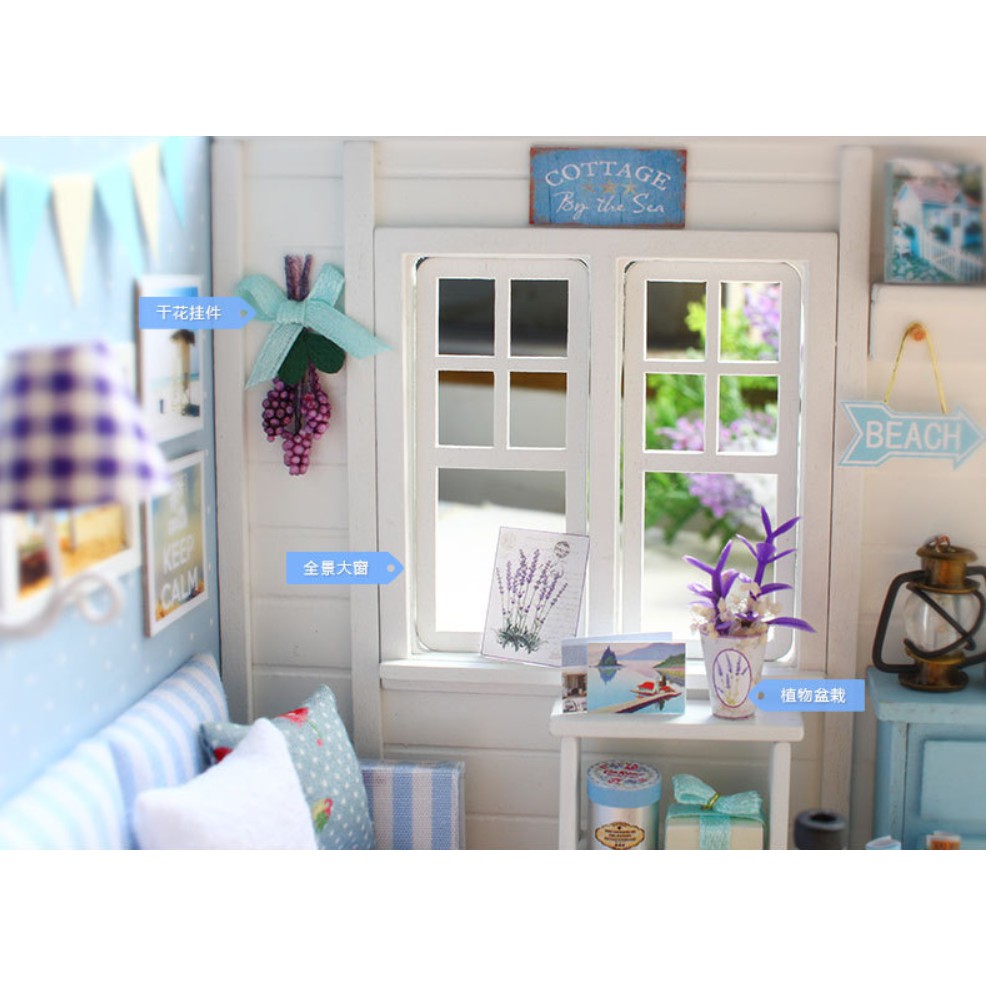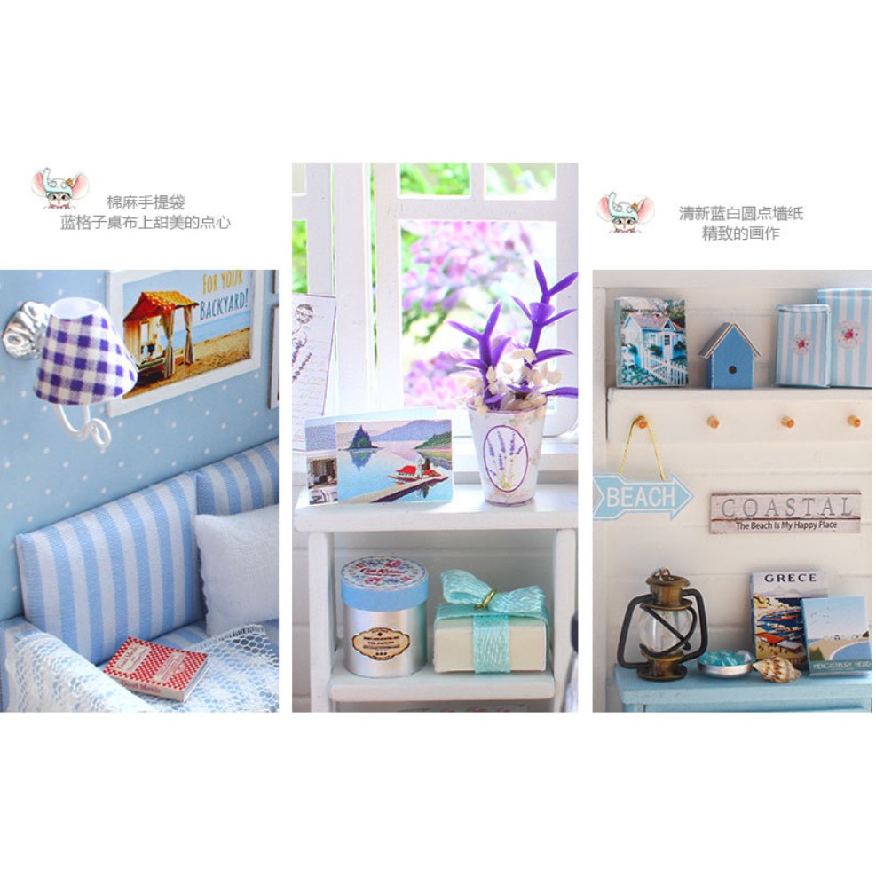Sản phẩm là mô hình thu nhỏ của một căn phòng khách trang nhã lịch sự với màu xanh kẻ sọc trắng đơn giản mà lịch lãm cùng những ánh đèn led lung linh ấm áp trong đêm.