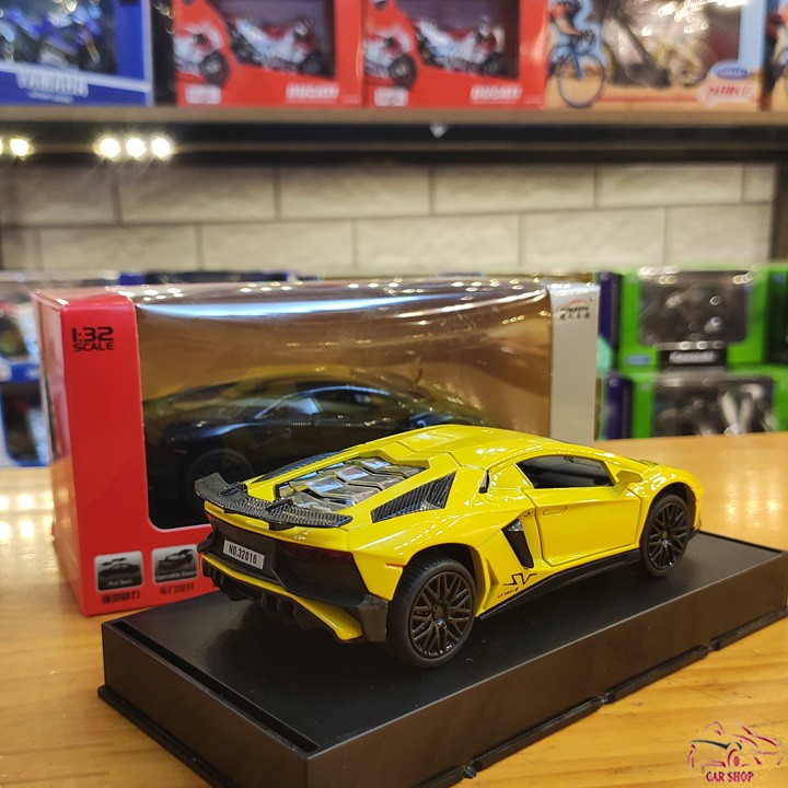Mô hình xe Lamborghini SV LP750-4 mẫu xe thể thao mô hình tĩnh bằng kim loại, nhựa, cao su dùng trưng bày, sưu tầm, món quà thú vị hoặc cũng có thể là 1 món đồ vừa chơi vừa học hỏi độc đáo cho trẻ em. Sản phẩm thích hợp làm quà tặng, trưng bày phòng khách, bàn làm việc, showroom hay đơn giản chỉ là sở hữu chiếc xe mô hình mình yêu thích. Tỉ lệ 1:32 Sản phẩm màu: vàng Kích thước sản phẩm : khoảng 15.5 * 6 * 4cm Trọng lượng sản phẩm : khoảng 0.3kg / xe Chất liệu : Toàn bộ khung, vỏ bằng kim loại; phụ kiện và nội thất bằng nhựa ABS, lốp xe bằng cao su non Chức năng: Xe mở được 2 cửa, nắp capo và cốp; có đèn và âm thanh khi mở cửa, có trớn lùi tự chạy