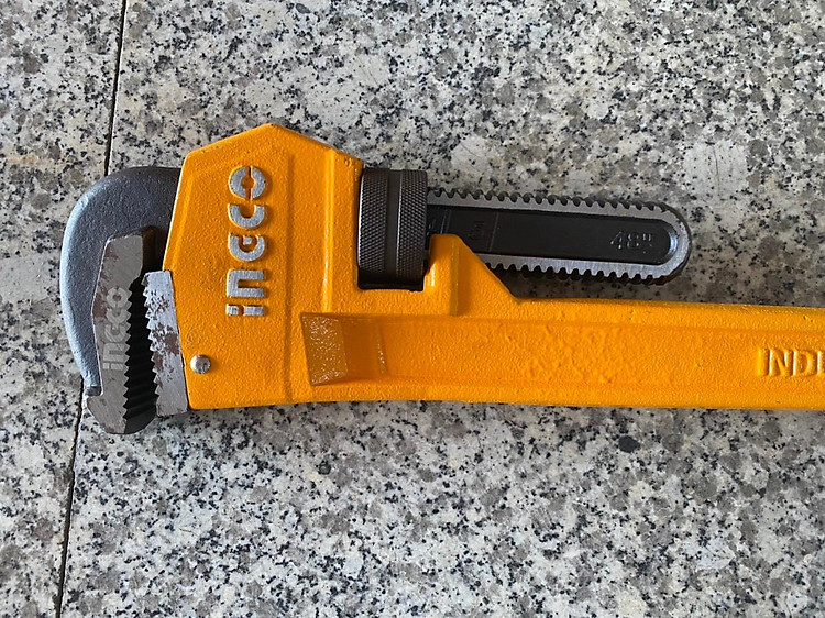 INGCO HPW0848 là mỏ lết răng (cờ lê ống) hạng nặng có kích thước lớn nhất trong dòng phổ thông với chiều dài 48 inch (1200mm), chuyên dùng cho các đường ống công nghiệp cực lớn và các công việc đòi hỏi lực đòn bẩy tối đa. Thông số kỹ thuật chi tiết Theo thông tin từ nhà sản xuất INGCO, các thông số của model này bao gồm: Kích thước chiều dài: 48 inch (xấp xỉ 1200mm đến 1219mm). Khả năng kẹp tối đa: Đường kính ống lên tới 110mm (khoảng 4 inch). Chất liệu thân: Gang dẻo (Ductile cast iron) giúp chịu tải cực lớn mà không bị biến dạng. Chất liệu hàm: Thép Cr-Mo hoặc thép carbon cao cấp được rèn thả (drop-forged) và xử lý nhiệt để tăng độ cứng vững. Xử lý bề mặt: Sơn đen bóng kết hợp đánh bóng, giúp chống ăn mòn trong môi trường làm việc khắc nghiệt. Cấu tạo: Đinh tán rắn (Solid rivet) chắc chắn và đai ốc điều chỉnh linh hoạt. Đặc điểm và ứng dụng Lực vặn khổng lồ: Với chiều dài 1,2 mét, HPW0848 cung cấp cánh tay đòn rất dài, giúp người dùng dễ dàng tháo mở các khớp nối ống bị rỉ sét lâu ngày hoặc siết chặt các đường ống cỡ lớn. Độ bền chuyên nghiệp: Theo đánh giá từ , sản phẩm được sản xuất theo quy trình kiểm định khắt khe, phù hợp cho thợ sửa chữa chuyên nghiệp trong các ngành dầu khí, cấp thoát nước và xây dựng công nghiệp. Thiết kế tối ưu: Tay cầm có độ bám tốt và cơ chế điều chỉnh hàm mượt mà giúp kiểm soát chính xác khi thao tác.